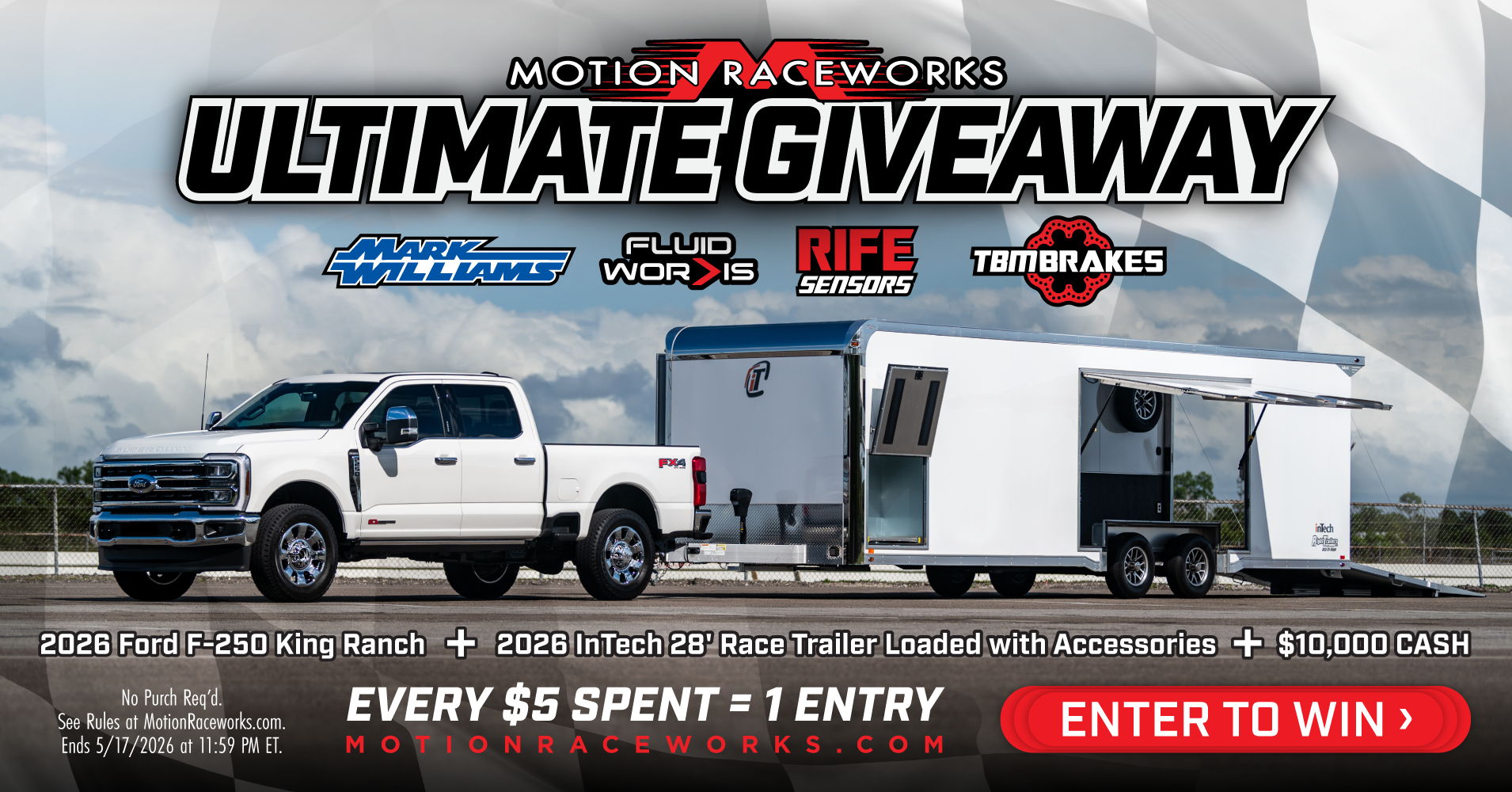 You can win, with every $5 spent at Motion Raceworks, TBM Brakes, or Mark Williams websites gets you one automatic entry
