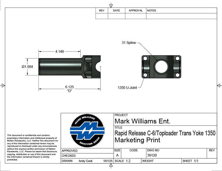 Mark Williams Extreme Duty transmission slip yokes are machined from high strength 4340 steel and thru hardened in house for ultimate strength. All machining is done in relationship to the spline pitch diameter to ensure each yoke is symmetrical for balance and smooth operation.